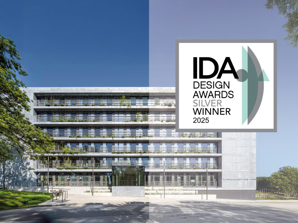 SSP erhält den International Design Award (IDA) 2025. Der Neubau des Technologiezentrums Ruhr (TZR) in Bochum mit Fassadenbegrünung und Biodiversitätsdach wurde als „Winner Silver“ ausgezeichnet.
