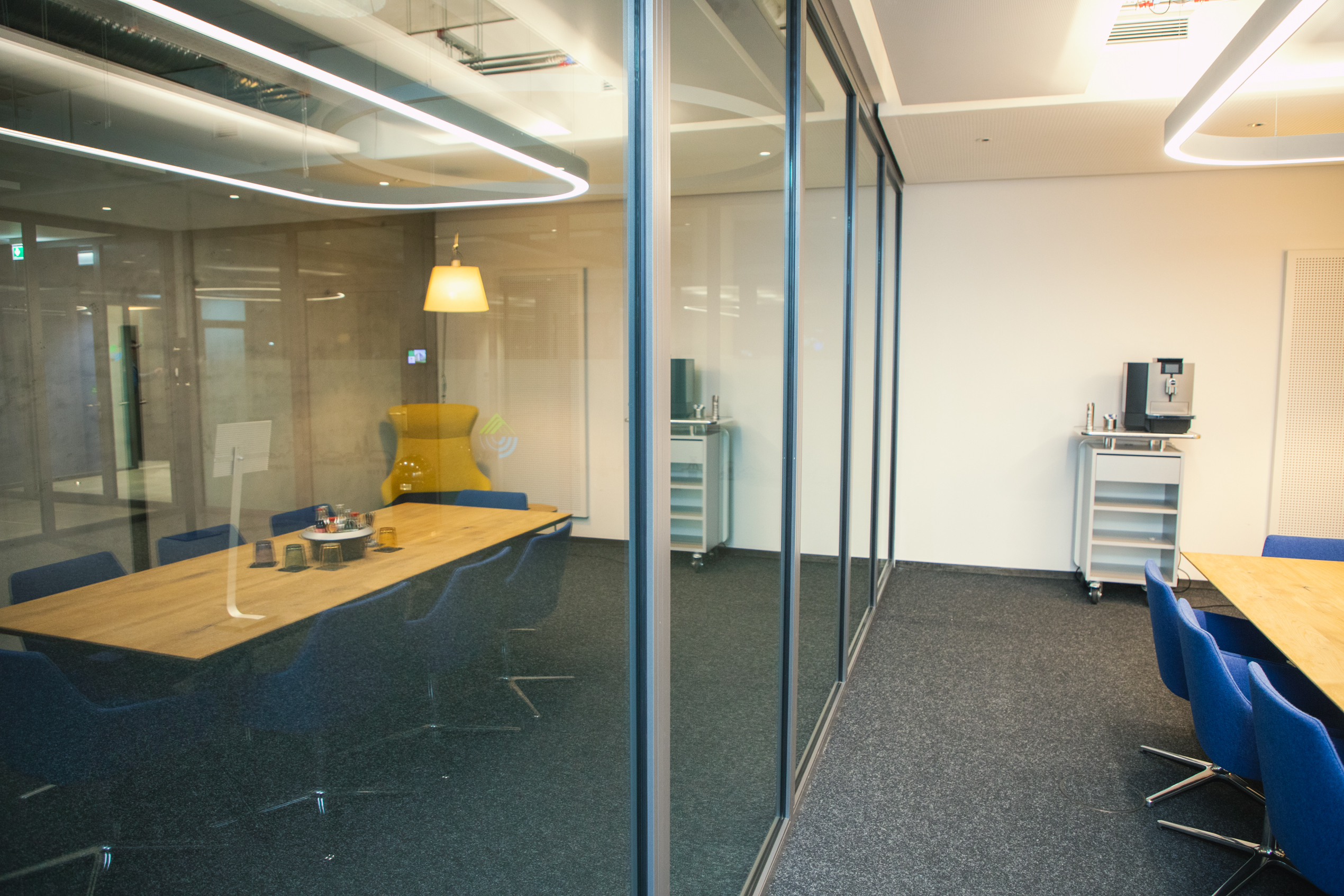 Für bis zu 36 Personen, zwei Großbildschirme, auf Wunsch Whiteboard, Flipchart und Moderatorentafel.